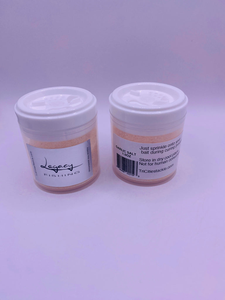 Legacy Fishing brings you an easy to use bottle to apply garlic salt to any of your bait mixes. Use for mixing or curing any bait.
