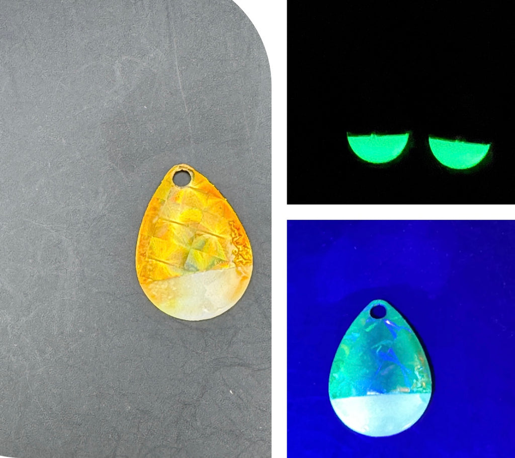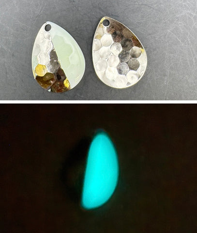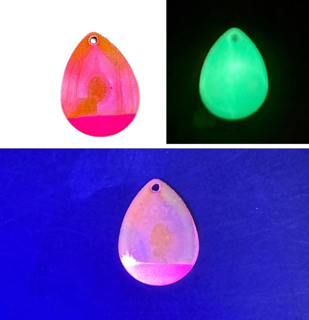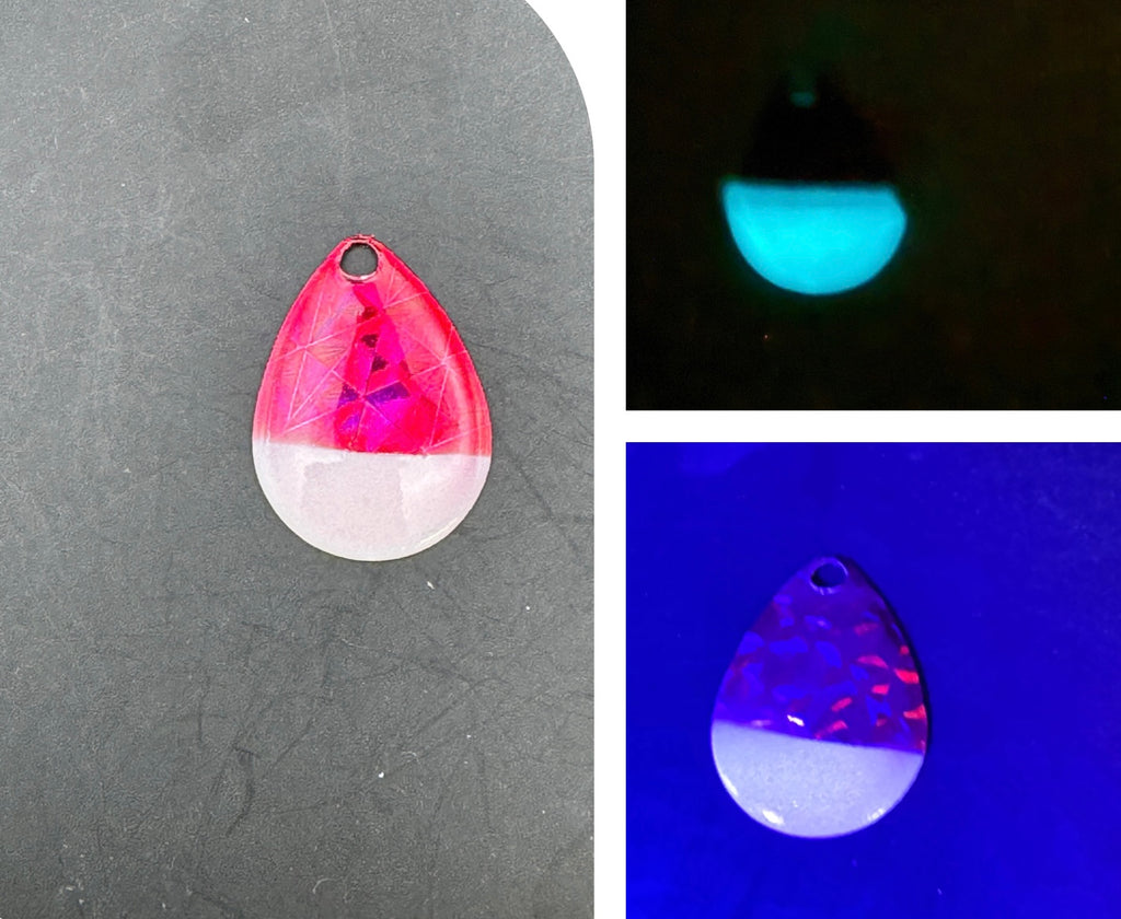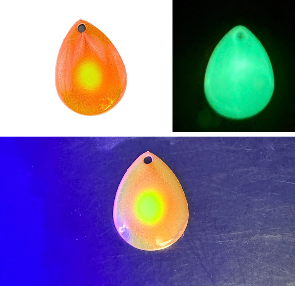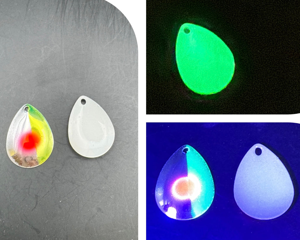 Legacy Fishing Custom Glow blades set you apart from any angler. We offer two Alien Glow colors. Green alien, and Blue alien. We combined the already popular Double vision blades, where the colors change under UV light. Lime to Chart. Pink to Orange . Magenta to orange. Green to chart.