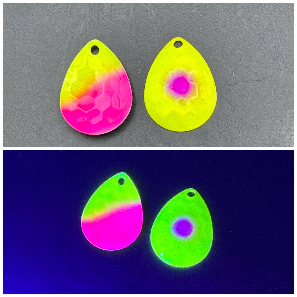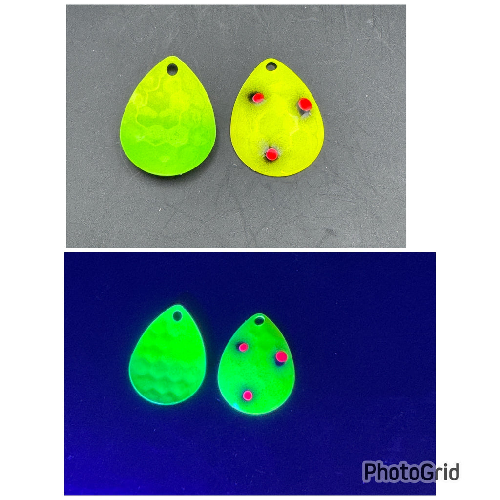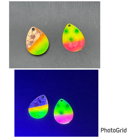 Legacy Fishing Handpainted Custom spinner blades in various colors for Salmon, Walleye, Sockeye, Chinook, & coho.