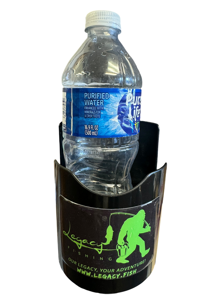 A cup holder perfect for your favorite jar of bait or beverage. use it on your boat, your tool box, or even customize your Legacy fishing pole holder!