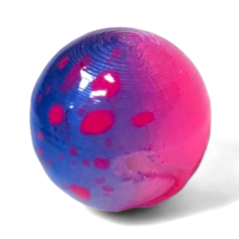 Two tone pink and blue. The blue side also has pink splatter.