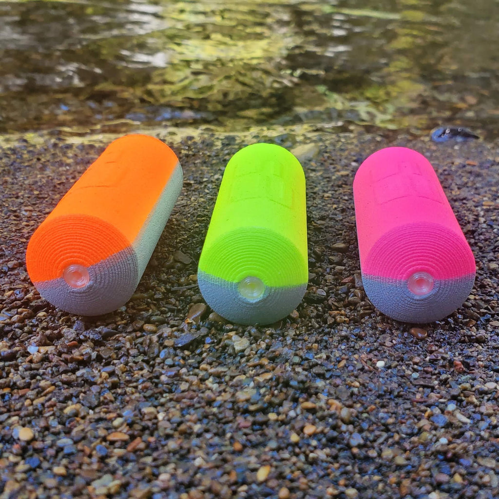 These Stealth Doggers are concave on one end and convex on the other end. This allows the float to be rigged in either direction to match the water speed. It's like having two sizes of traditional style bobber dogging floats in one.