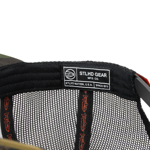 The STLHD Camo trucker is just as tough as the original black and white but tailored for the all-around outdoorsman or woman. A classic camo pattern and snap enclosure make this hat perfect for your fishing hat collection.