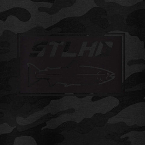 The STLHD Black Water hooded sweatshirt is the ultimate in understated black on black design. Our standard STLHD logo in the center chest of this black camo hoodie makes this a true fish-stalkers' hoodie.