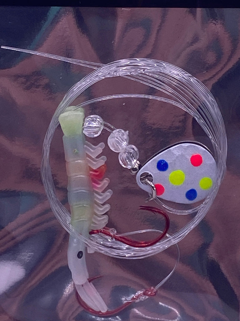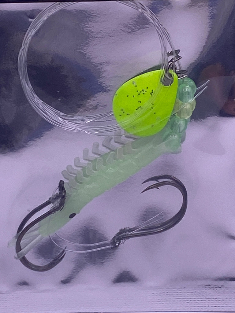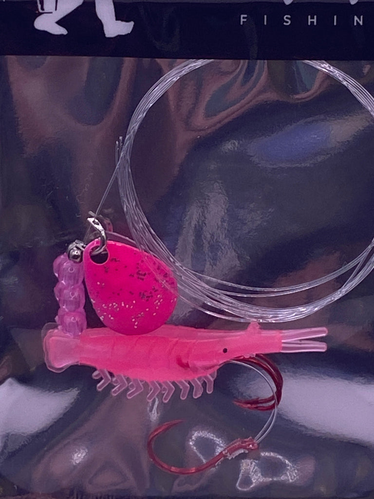 Legacy Fishing makes micro shrimp Rigs. Comes with custom painted blade by Legacy Fishing