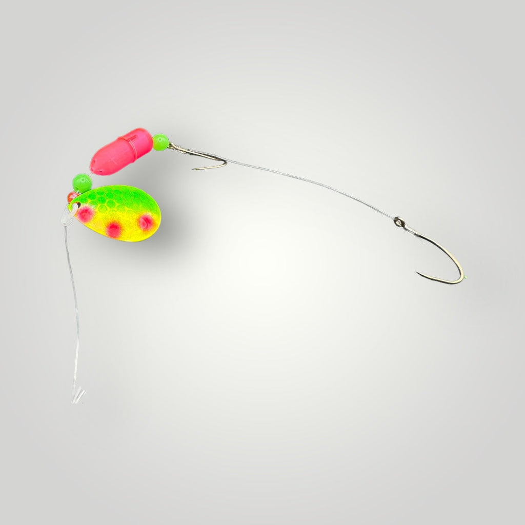 We have combined two of our proven products into one! the scent bullet allows you to fill with your favorite scent and not worry about reapplying or messing with messy scent on your gear. The Legacy Fishing Custom Painted blade is proven to catch fish!