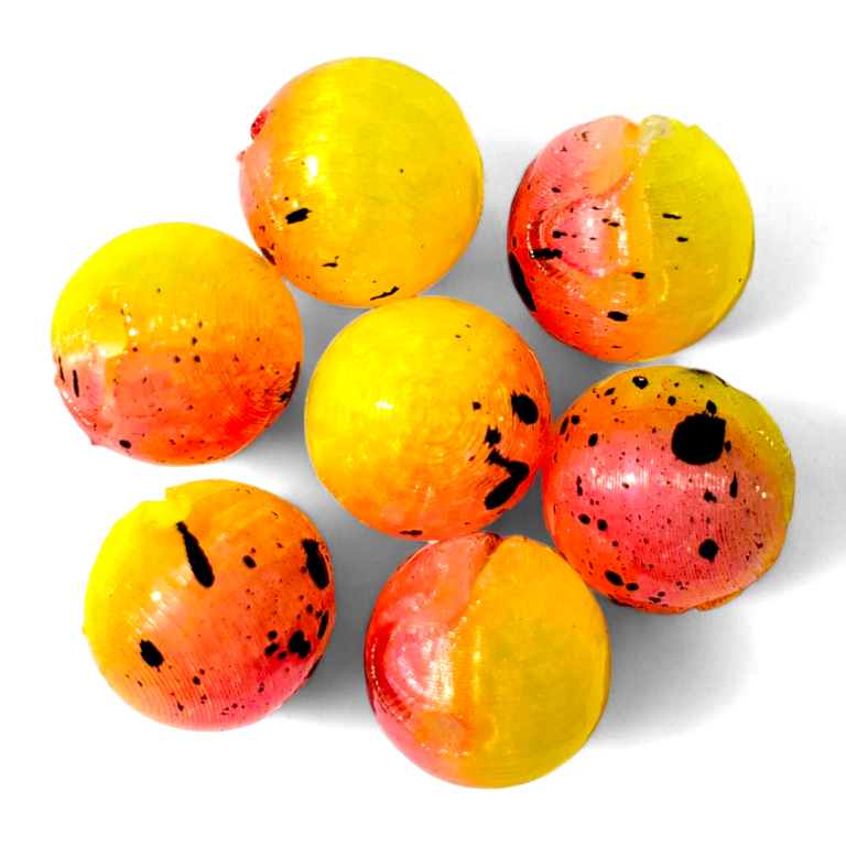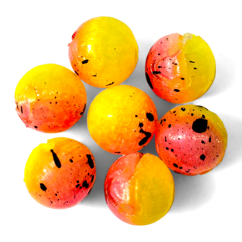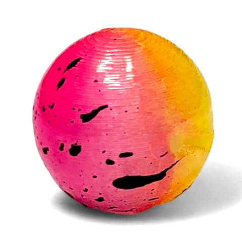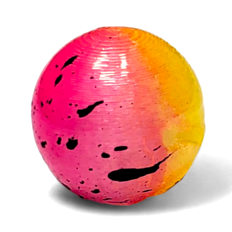 This is a two-tone color with chartreuse and pink. The pink side also has black splatter.