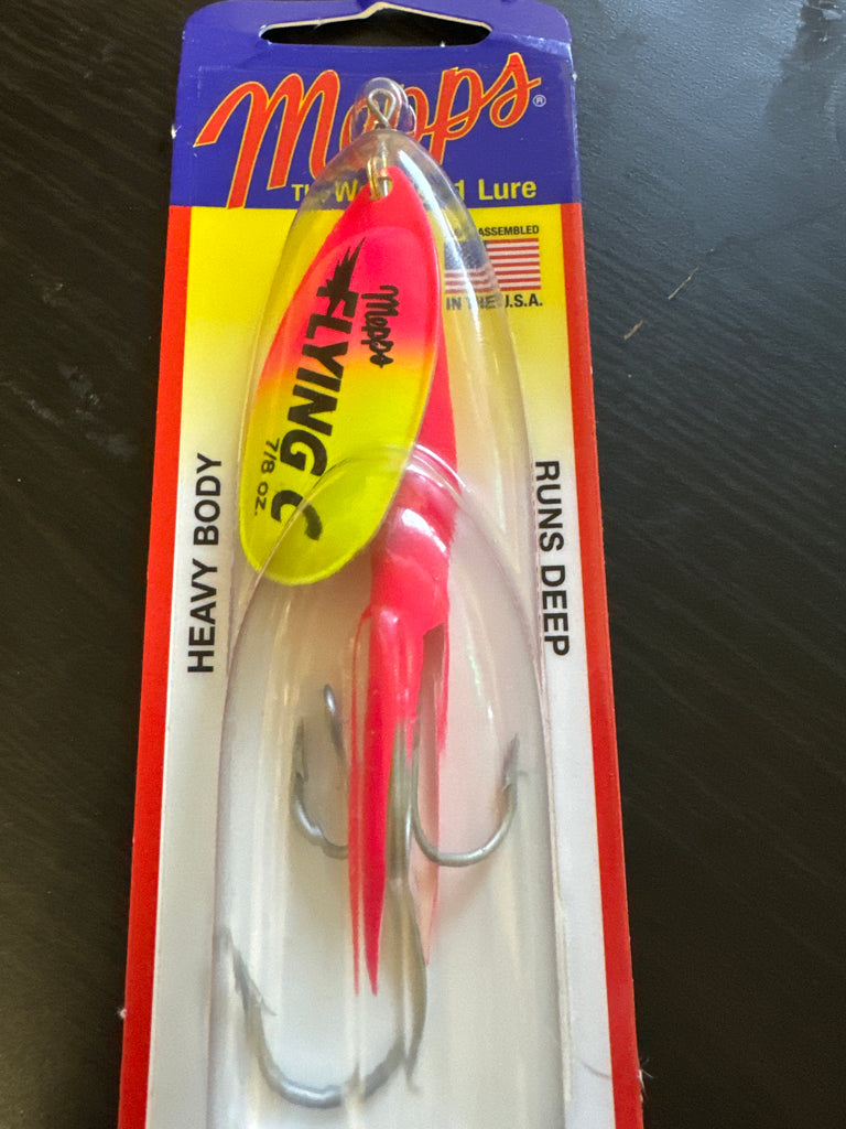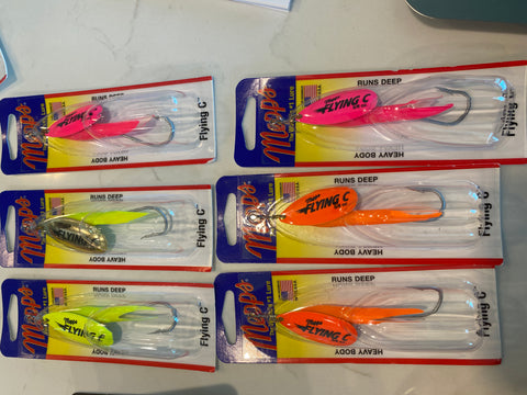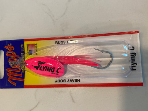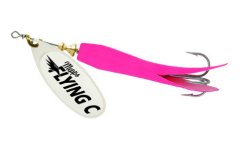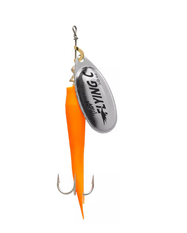 Mepps Flying C - The Flying C Is The Perfect Salmon And Steelhead Lure For Pier Or Stream Fisherman. It Is Proven In Alaska And The Pacific Northwest. The Mepps Flying C Is A Heavyweight Spinner That Drops Deep And Stays Deep Throughout The Retrieve. In Fact, It's One Of Mepps Deepest Running Spinners. Its Bright Fluorescent Sleeve Acts As A Highly Reflective Attractor. Bodies Are Solid Brass. Silver Blades Are Genuine Silver Plate. Gold Blades Are Polished Brass. Painted Blades Are Finished With Computer Age Epoxy. the Perfect Salmon And Steelhead Luredrops Deep And Stays Deep Throughout The Retrievebodies Are Solid Brasstreble Hookmpn