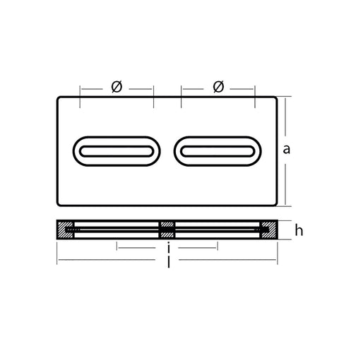 This rectangular plate anode is designed to be installed on the hull of a boat. The slotted holes in the plate prevent the need for drilling and give divers the ability to install them underwater. Much like other anodes, this anode works by absorbing corrosion and preventing it from reaching other metallic surfaces of a boat.